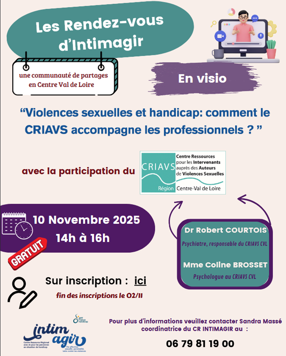 Dans le cadre de la nouveauté 2025 du Centre Ressource INTIMAGIR Centre Val de Loire, nous participerons aux "rendez-vous d'INTIMAGIR" ! 💻